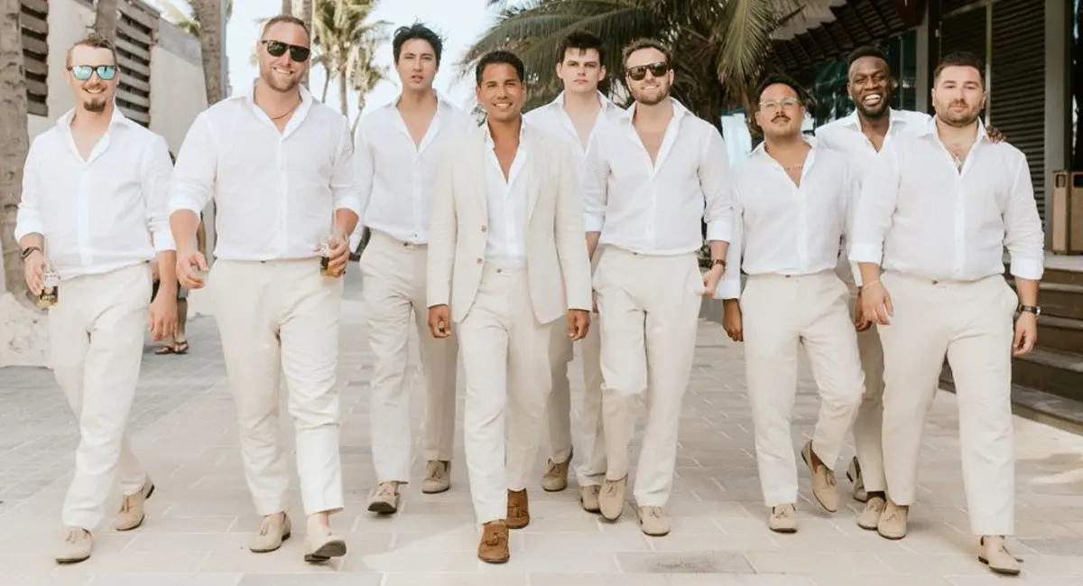 Opte por camisas blancas o marfil combinadas con pantalones a medida, o un traje ligero de lino o algodón. Completa el look con mocasines o sandalias marrones para una sensación refinada pero relajada.